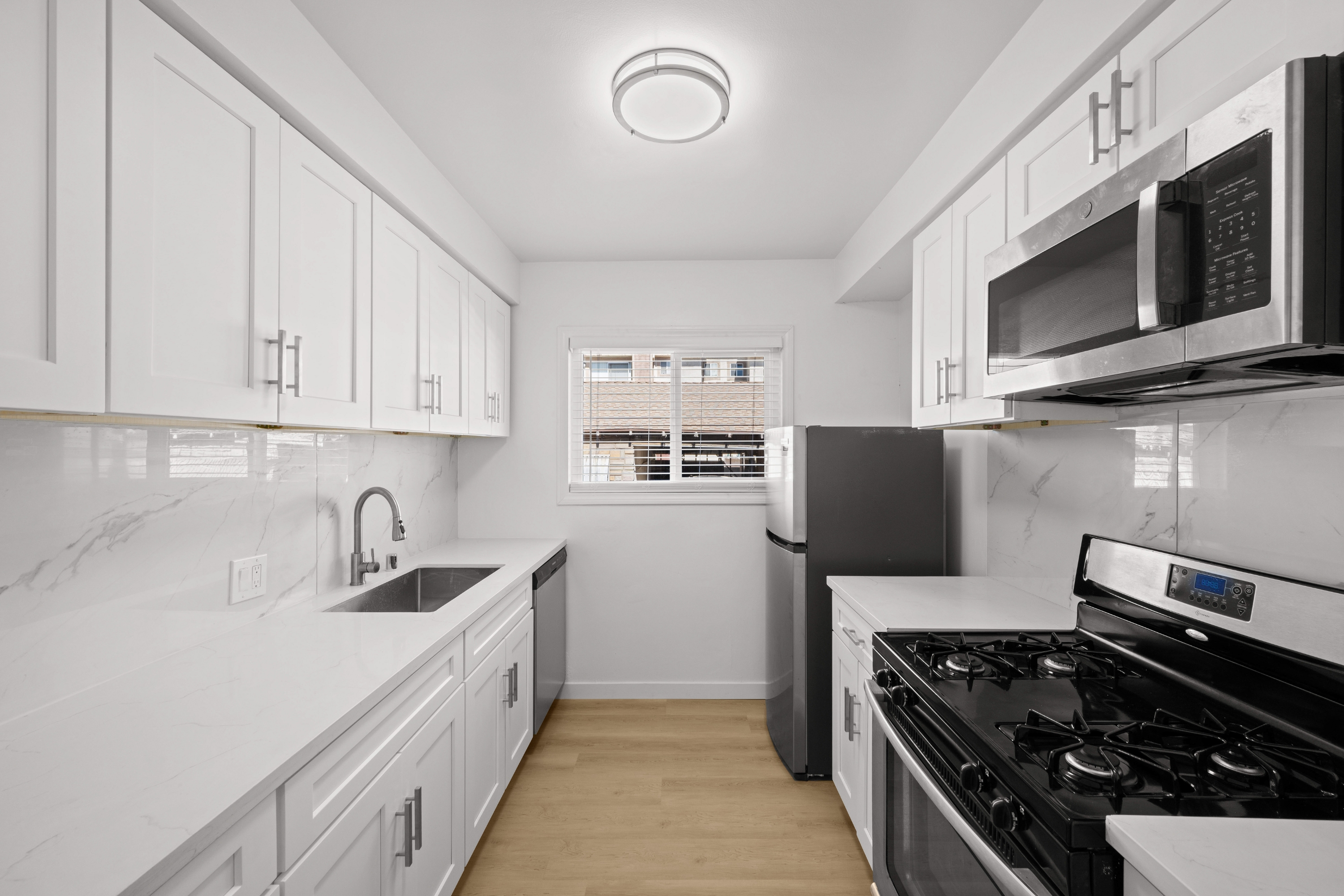 | Welcome to this fully remodeled 1-bedroom, 1-bathroom unit in Pasadena. Upon entering the unit, you are welcomed into a large living room with plenty of space to host guests and brand new, luxury vinyl flooring throughout. Making your way to the kitchen you will be greeted by beautiful white countertops and brand-new stainless-steel appliances that include refrigerator, dishwasher, stove, microwave, and dishwasher. The bedroom has windows that bring natural light into the space and a large closet. The bathroom has tiled flooring and a tiled shower that makes the room feel bright and spacious. The unit also features in unit laundry and one parking space. |